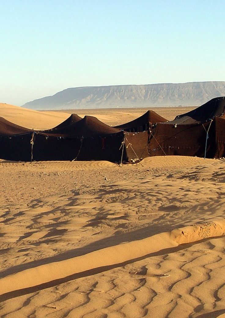 The next site to see is Rose Valley. Going through the big Skoura palm grove a beautiful place to contemplate countless palms and numerous kasbahs that are built in the surrounding area we’ll stops for lunch. We’ll pass by Dades & Todra valleys ,Tinejdad , Touroug and then we continue our way to the desert to reach the stunning dunes of Merzouga where we´ll experience the Camel trekking through the golden Erg Chebbi desert with a break to watch incredible sunset over the dunes, try Sandbaording in the sand if you are interested, enjoy the beautiful landscapes… until the sun goes down then continue to Berber Camp Merzouga where you will be greeted with a glas of mint tea and relax till dinner time, after that there will be some traditional berber drumming music around the fire, admire a beautiful starry sky and then sleep nomadic tented camp.